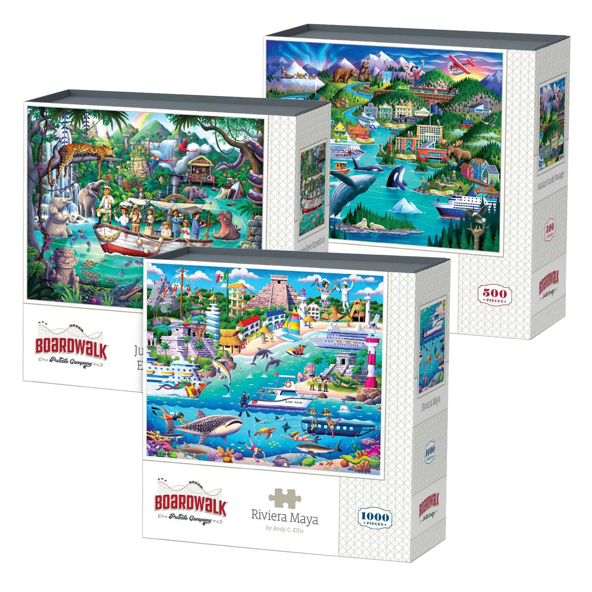 Boardwalk Assorted Jigsaw Puzzles, 3-pack