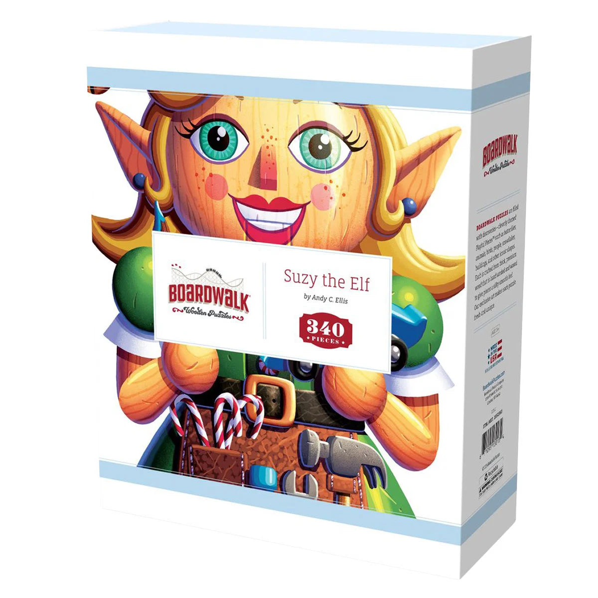 Enjoy a completely different and elevated puzzle experience. Boardwalk luxury wood puzzles capture the beauty of hand-finished wood and brilliant art. Each piece is sanded and polished with natural wood wax. Each puzzle is precision cut in a unique shape, for example, the Christmas Stocking is cut in the shape of a Stocking. All Boardwalk Wooden Puzzles are packed with fun, themed playful pieces.