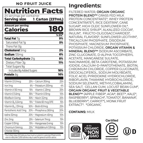 Orgain USDA Organic Kids Nutritional Protein Shake, Chocolate, 8 fl oz, 24-pack