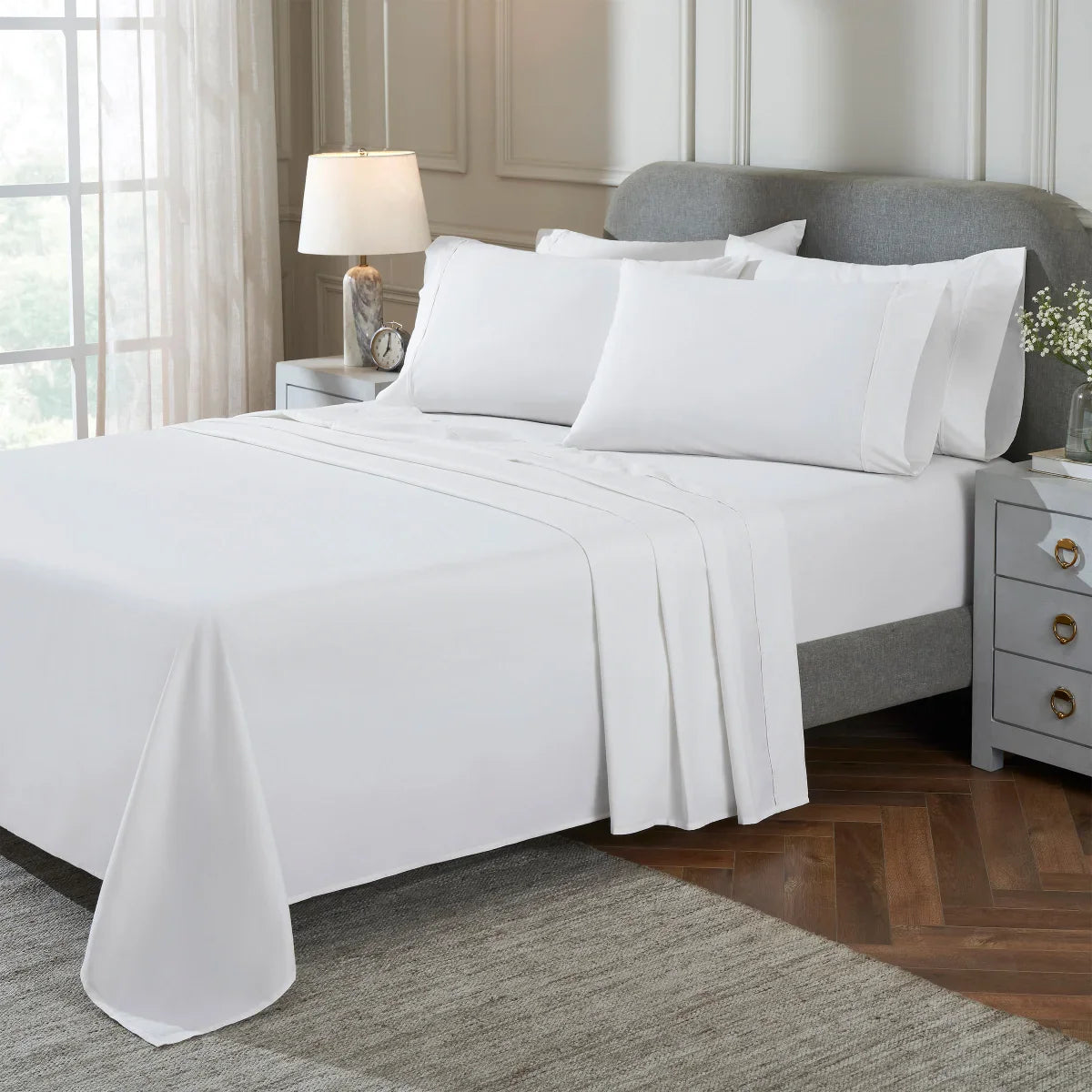 Blends of cotton and filament provide permanent cooling performance. The moisture wicking and cooling properties in this sheet set help provide extra comfort.