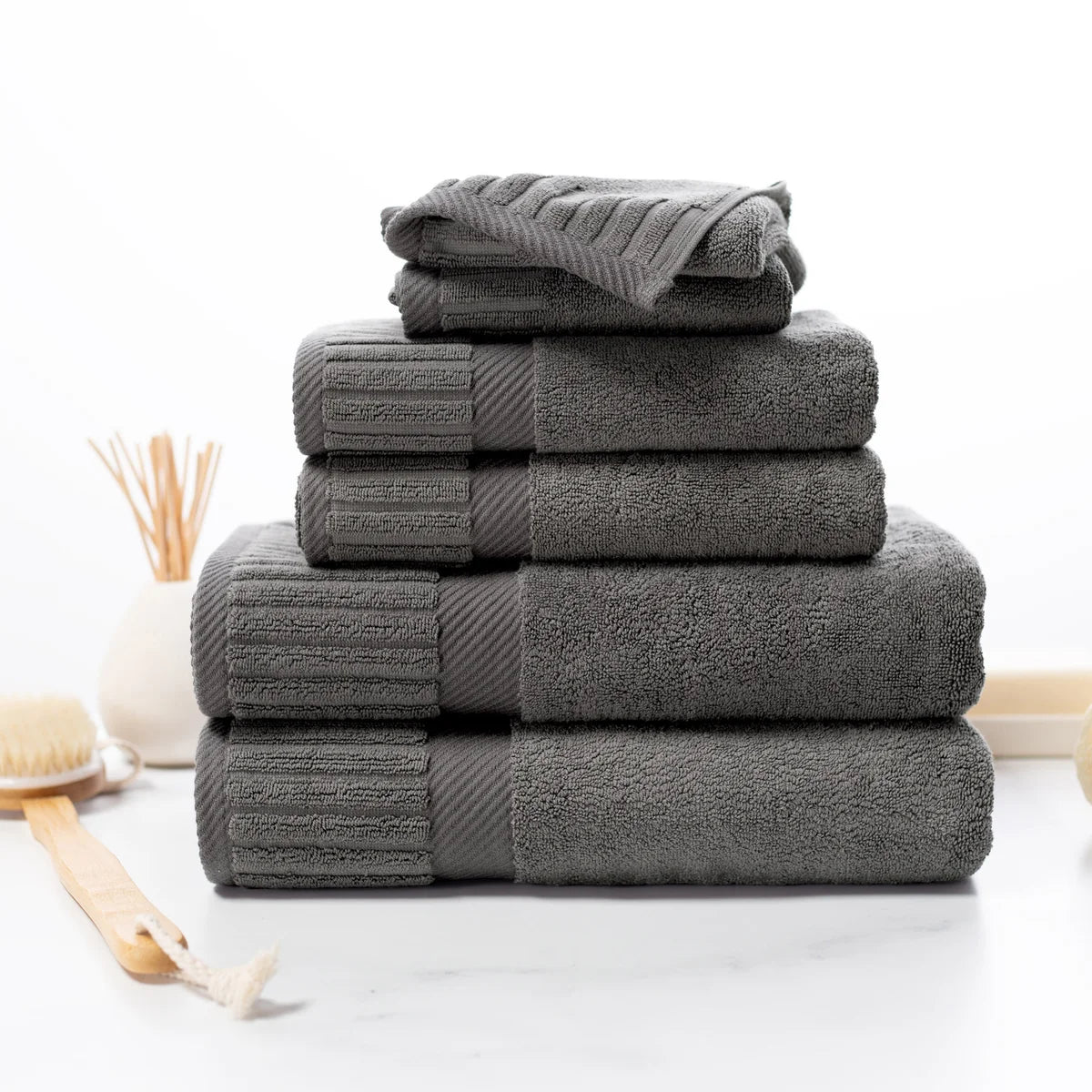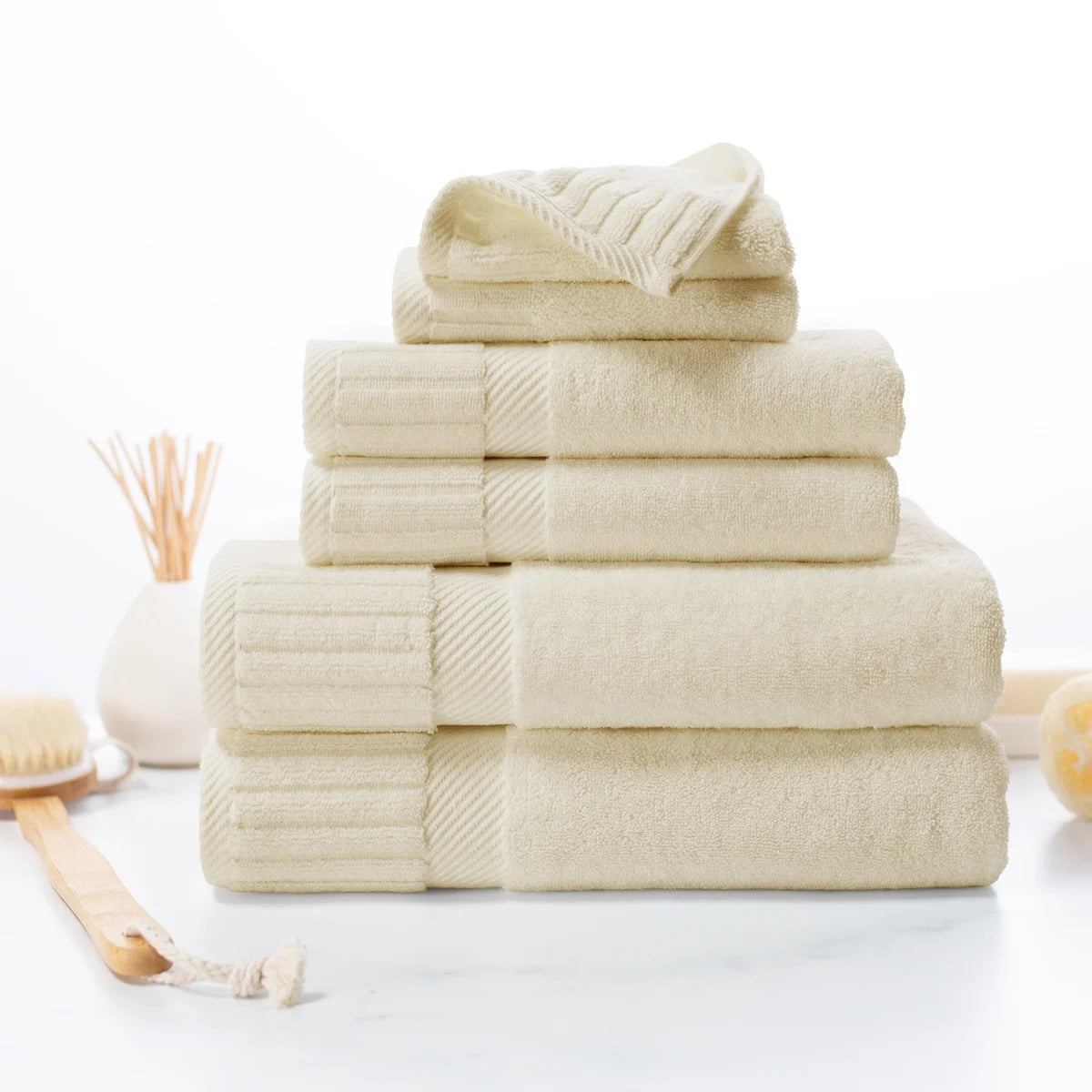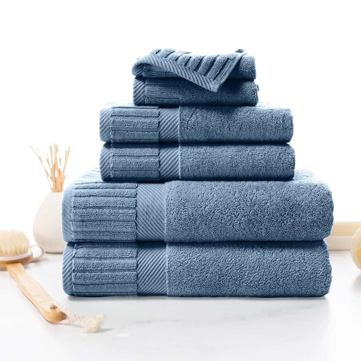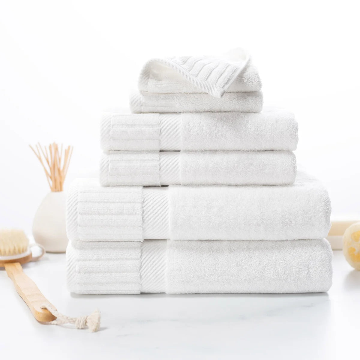 - 6-piece Set Includes: 2 Bath Towels, 2 Hand Towels and 2 Washcloths