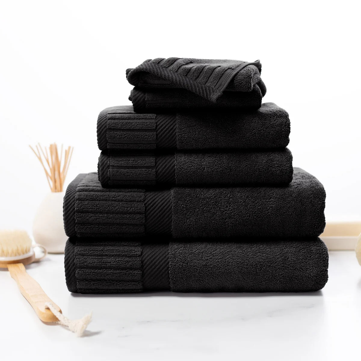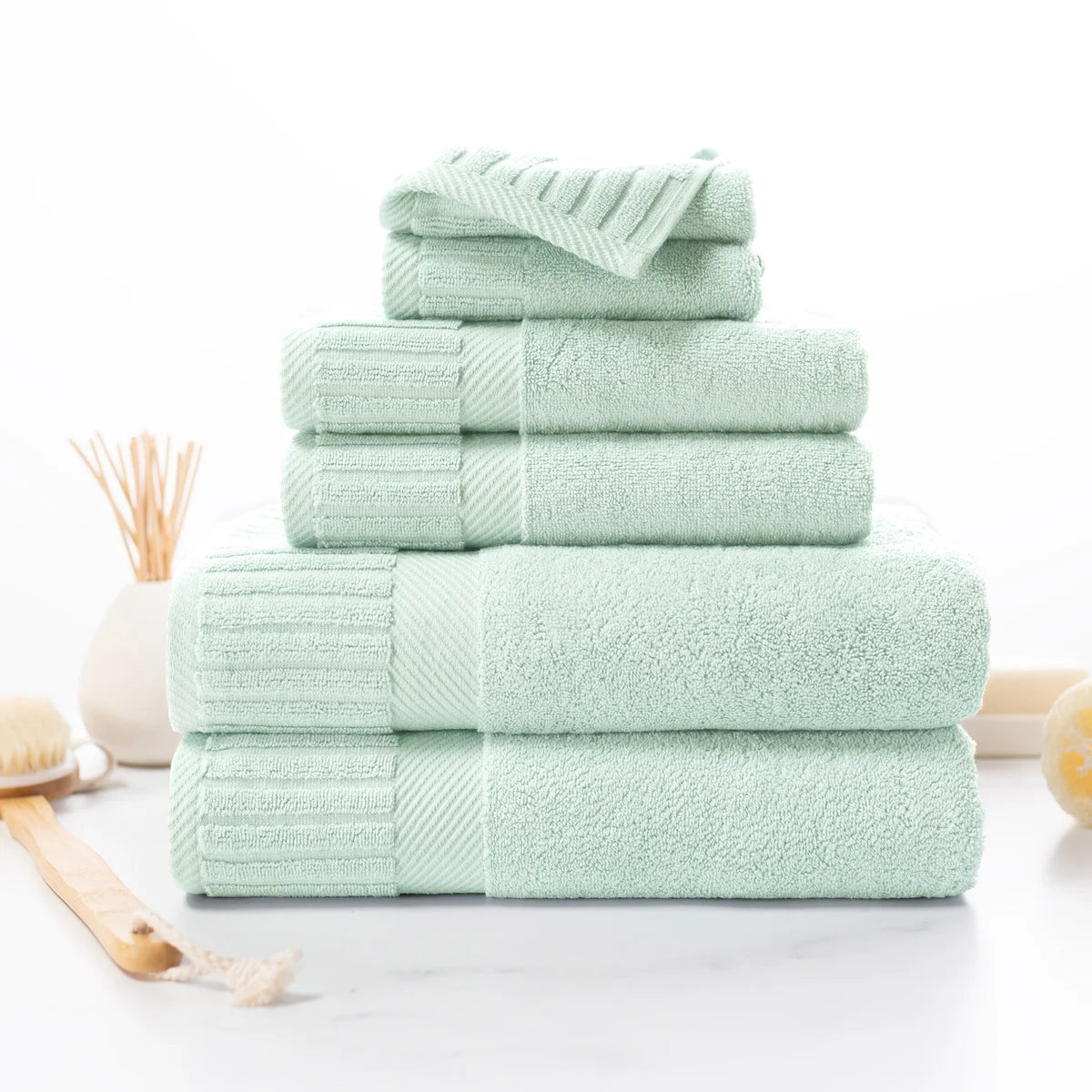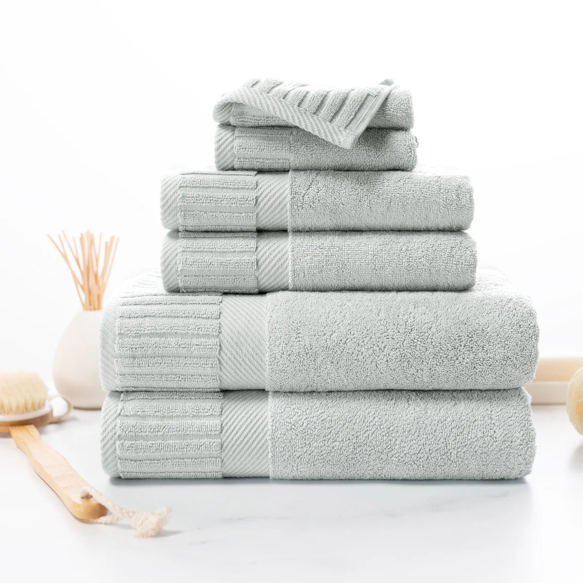 - 6-piece Set Includes: 2 Bath Towels, 2 Hand Towels and 2 Washcloths