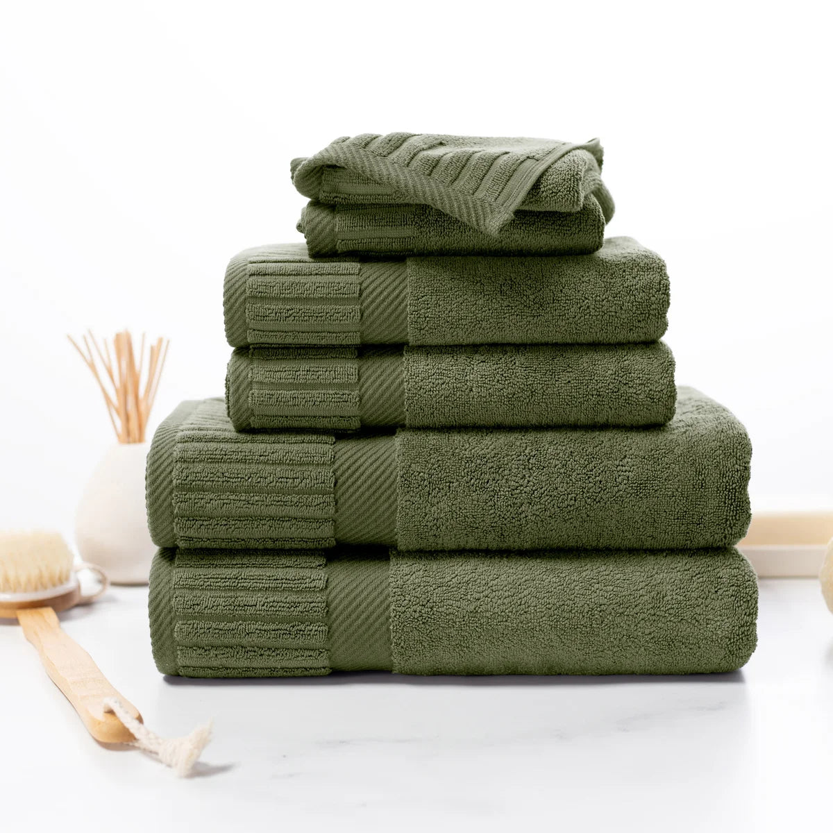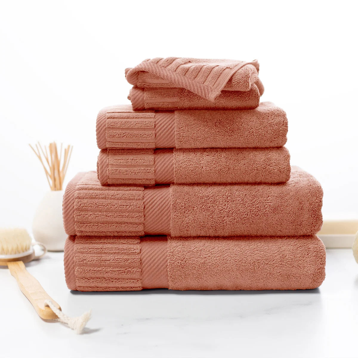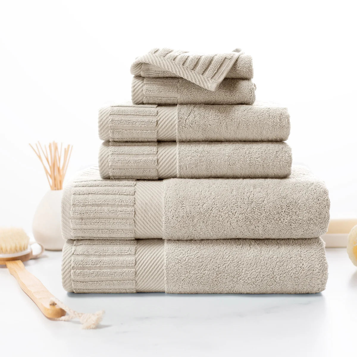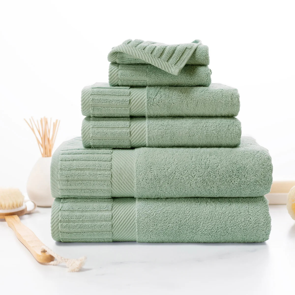 - 6-piece Set Includes: 2 Bath Towels, 2 Hand Towels and 2 Washcloths
